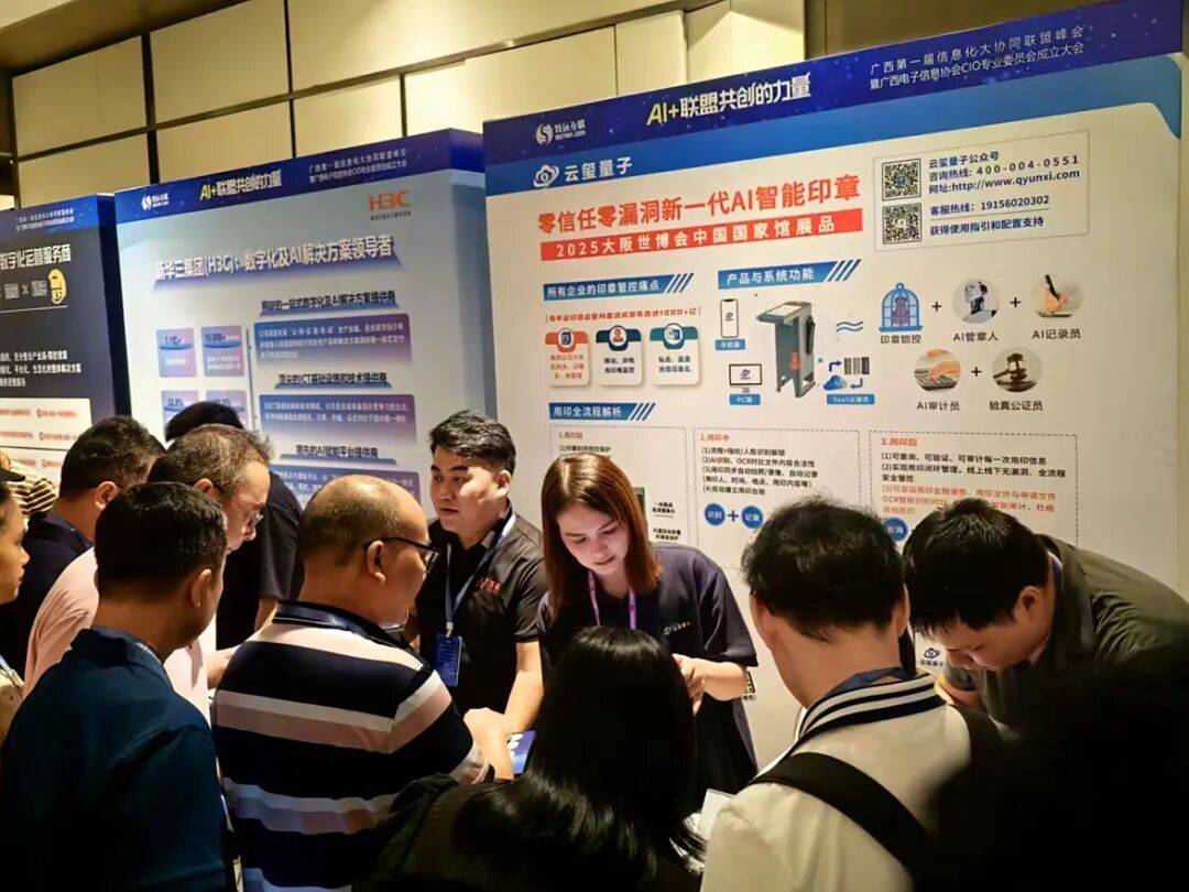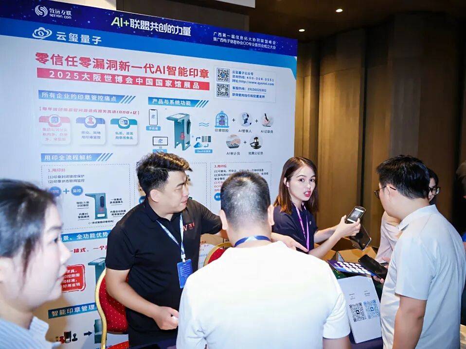 作为大会联办单位之一,中国智能印章原创发明人云玺量子受邀参会,携全球领先“零信任”AI智能印章及多款创新成果亮相,深度参与联盟生态共建,并正式成为广西信息化协同联盟核心成员。
