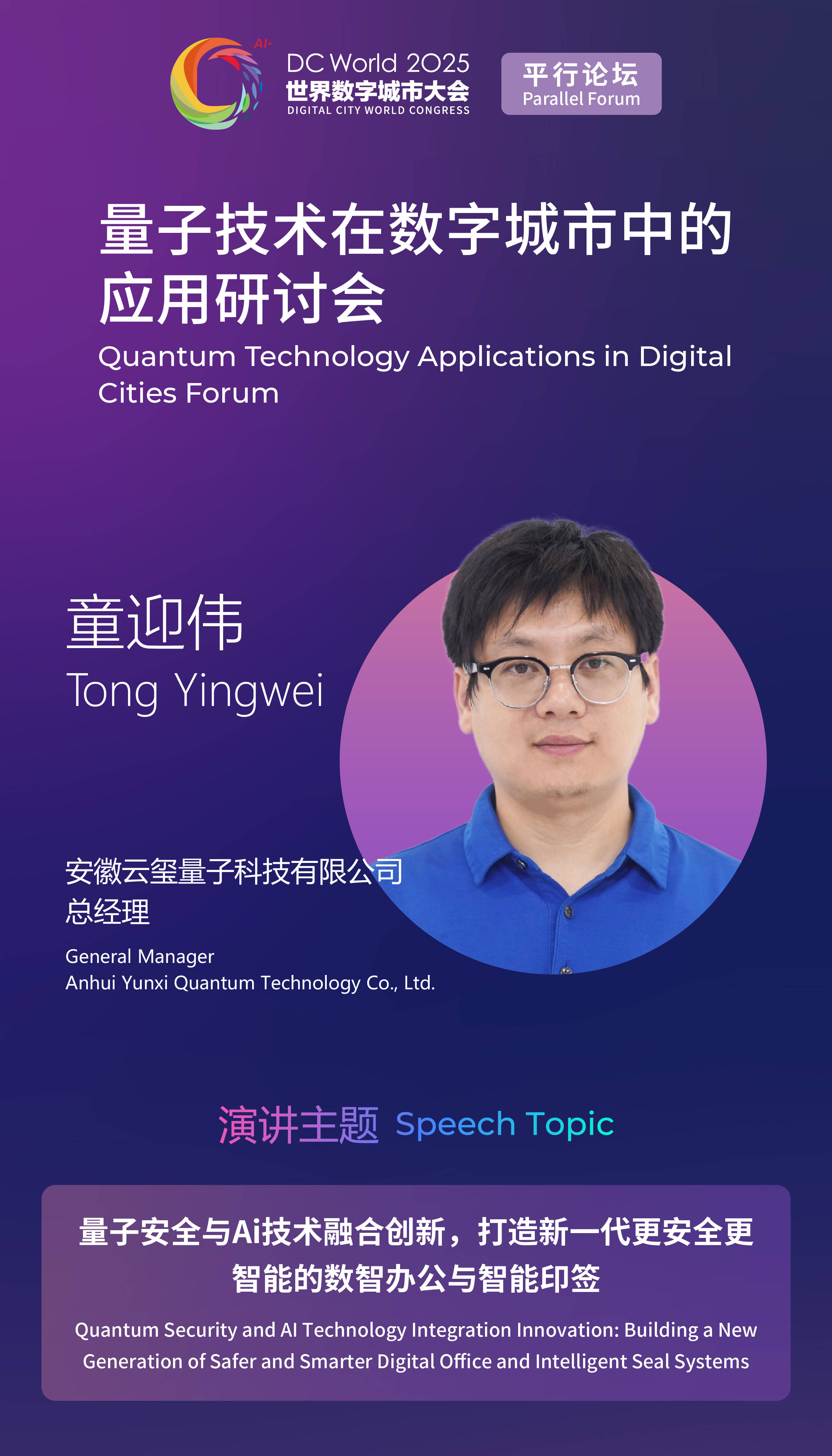 中国智能印章原创发明人、云玺量子创始人&董事长童迎伟将受邀出席“量子技术在数字城市应用研讨会”发表致辞,并作《量子安全与Ai技术融合创新,打造新一代更安全更智能的数智办公与智能印签》的主题演讲。