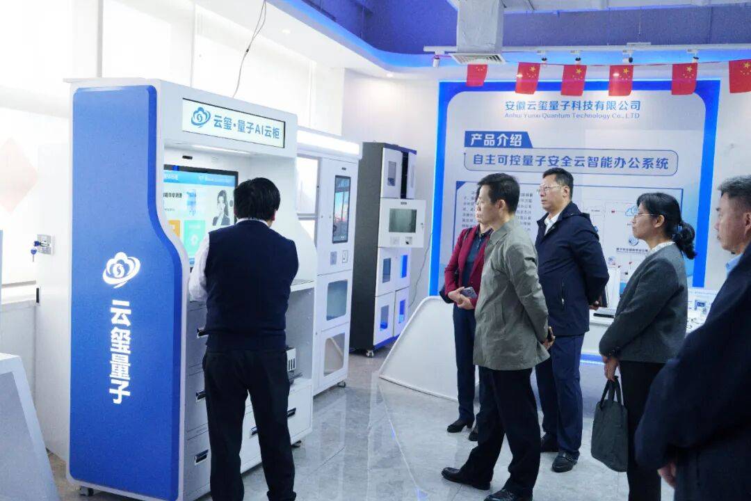 参访期间,参访团首先参观了云玺量子展厅,实地了解量子安全与人工智能技术在办公场景的落地应用成果。董事长童迎伟向参访团详细介绍公司在量子科技与人工智能领域的创新突破,重点展示量子 AI “三体” 未来办公场景及新一代量子 AI 智能印章系列产品。