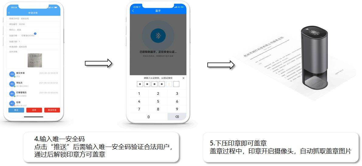 线上电子审批难以和线下盖章实现闭环管理,印章使用不能按照审批意见执行;