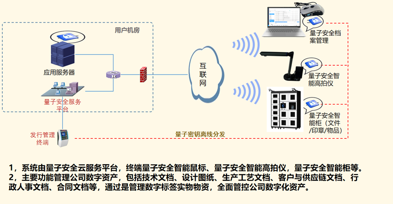 系统包括量子安全云服务、量子安全智能高拍仪、量子安全智能柜、量子安全智能鼠标、量子安全PC/移动终端应用、智能标签。